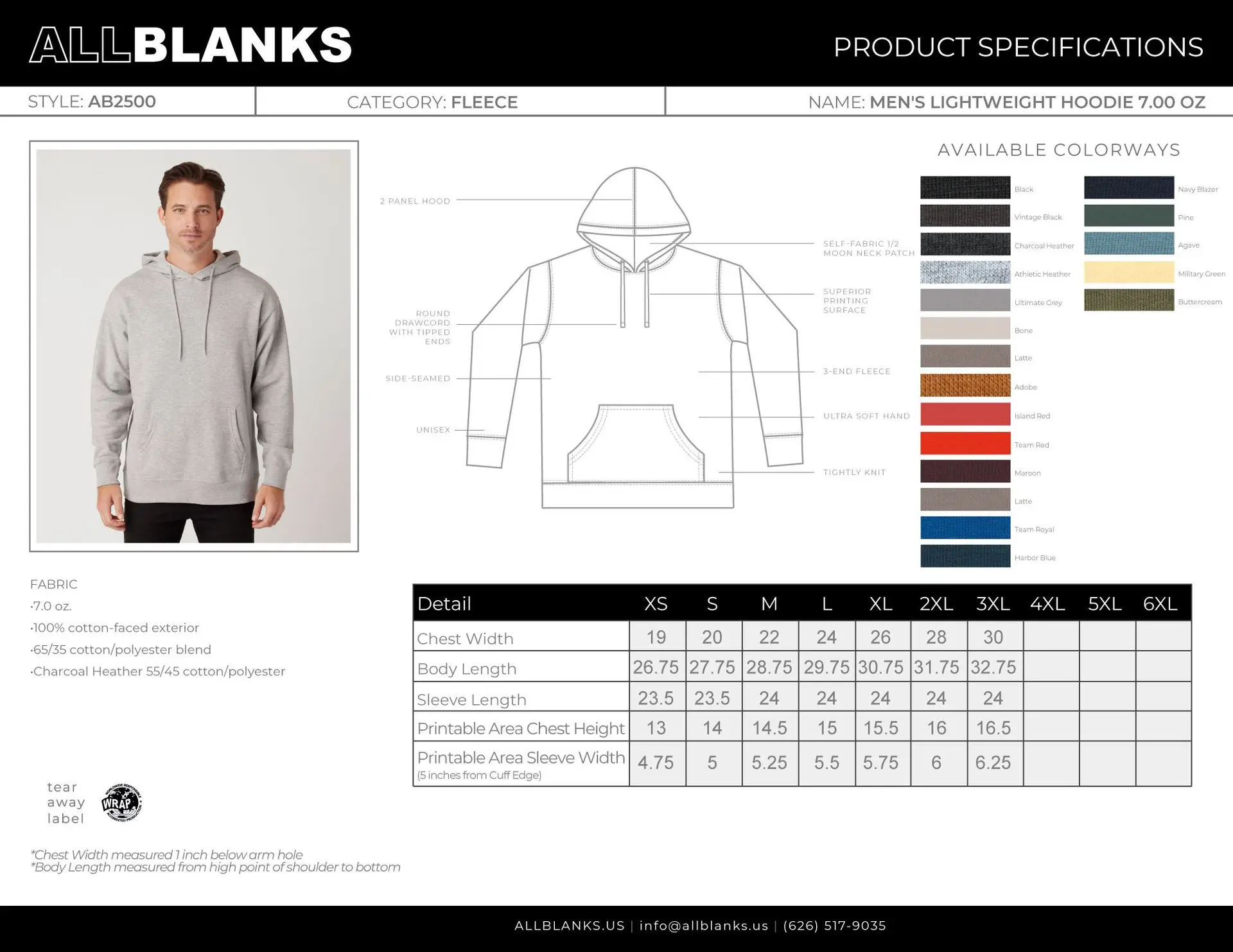 Unisex, ultra soft hand, side-seamed, tightly knit, 2 panel hood, round drawcord with tipped ends, self fabric 1/2 moon patch on neck for custom branding, superior printability, great for discharging.